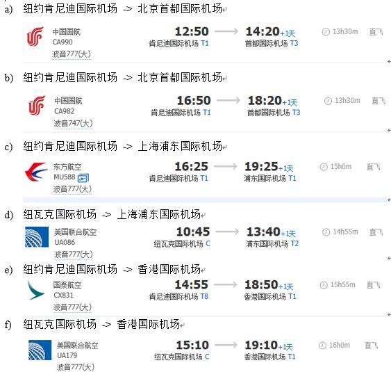 - 如果我参加纽约州立大学 - 美国“数学大联盟杯赛”决赛和夏令营(2017年7月16日 - 2017年7月29日),我应该乘坐哪趟航班去纽约或者乘坐哪趟航班从纽约回中国?