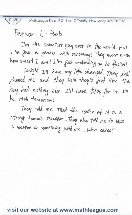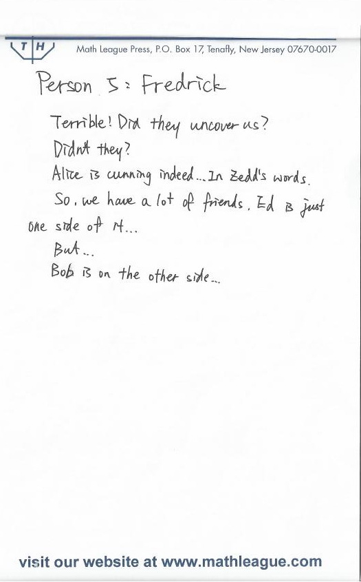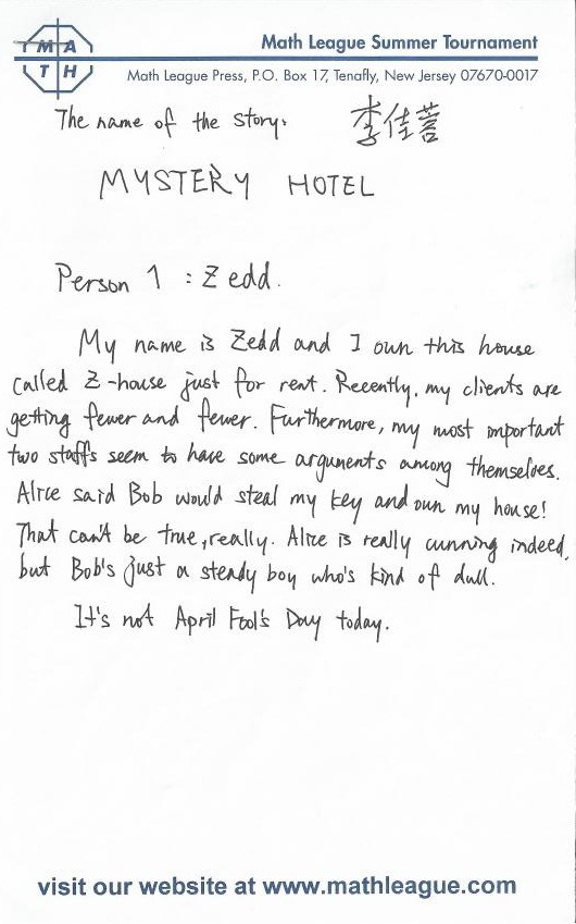 My name is Zedd and I own this house called Z-house just for rent. Recently, my clients are getting fewer and fewer. Furthermore, my most important two staffs seem to have some arguments among themselves. Alice said Bob would steal my key and own my house! That can’t be true, really. Alice is really cunning indeed, but Bob’s just a steady boy who’s kind of dull.