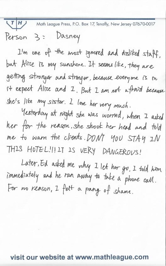 I’m one of the most ignored and disliked staff, but Alice is my sunshine. It seems like, they are getting stronger and stronger, because everyone is in it expect Alice and I. But I am not afraid because she’s like my sister. I love her very much.