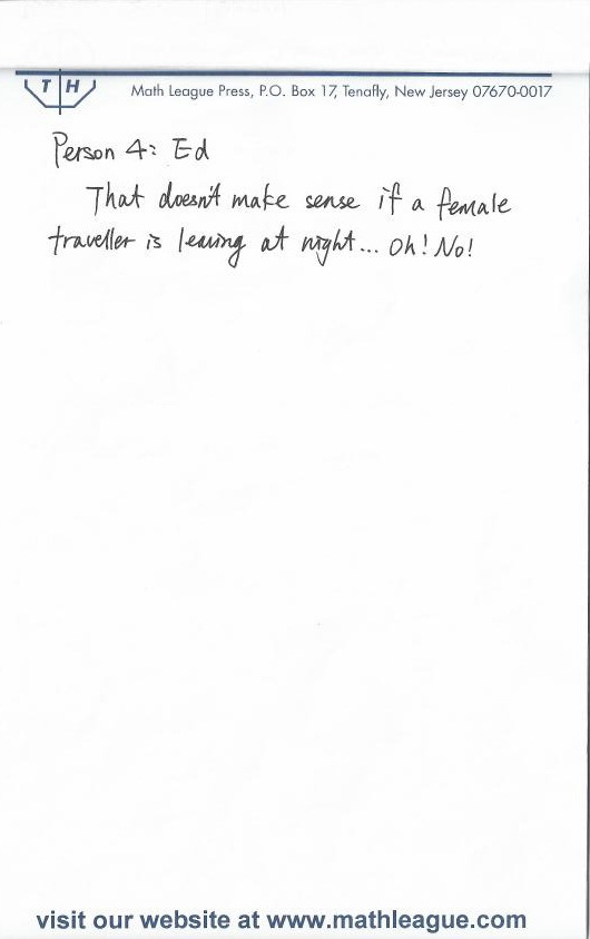That doesn’t make sense if a female traveller is leaving at night… Oh! No!