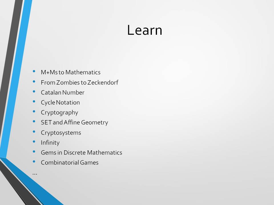 During the time in TCNJ, we learnt wide, complex, math knowledge so many fields of maths, which I haven’t seen before mostly. I was shocked when I first read the schedule – more than ten lectures in the first.