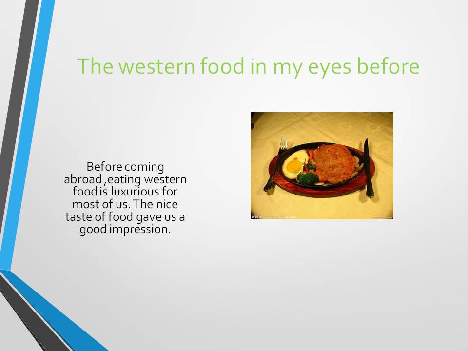 Ladies and gentlemen, I’m glad to be true to tell you something about eating in American. Before coming abroad, eating western food is luxurious for most of us. The nice taste of food gave us a good impression. But after eating many meals at the TCNJ, I realized what is real western food. I really enjoyed eating food at TCNJ, western food for its great taste and excellent quality.