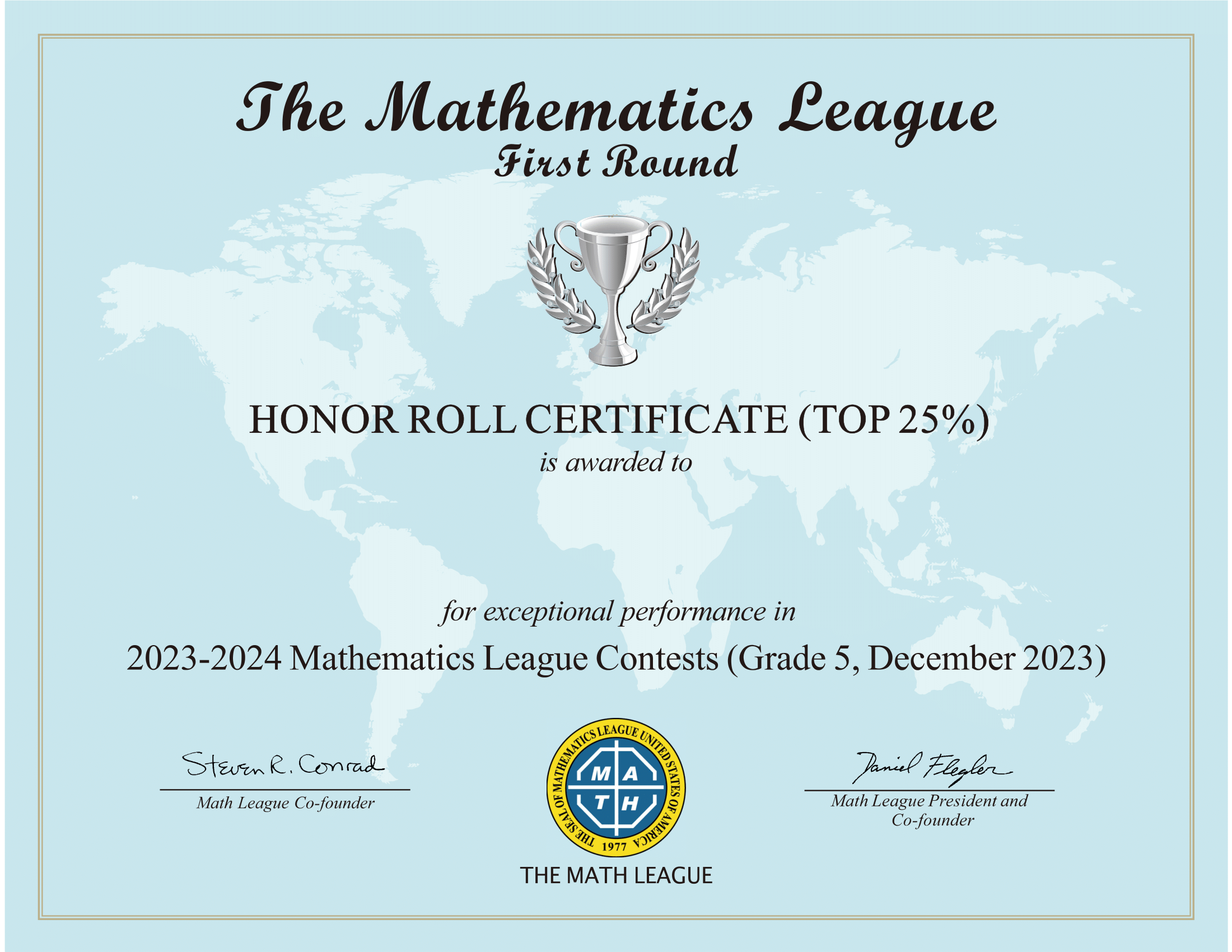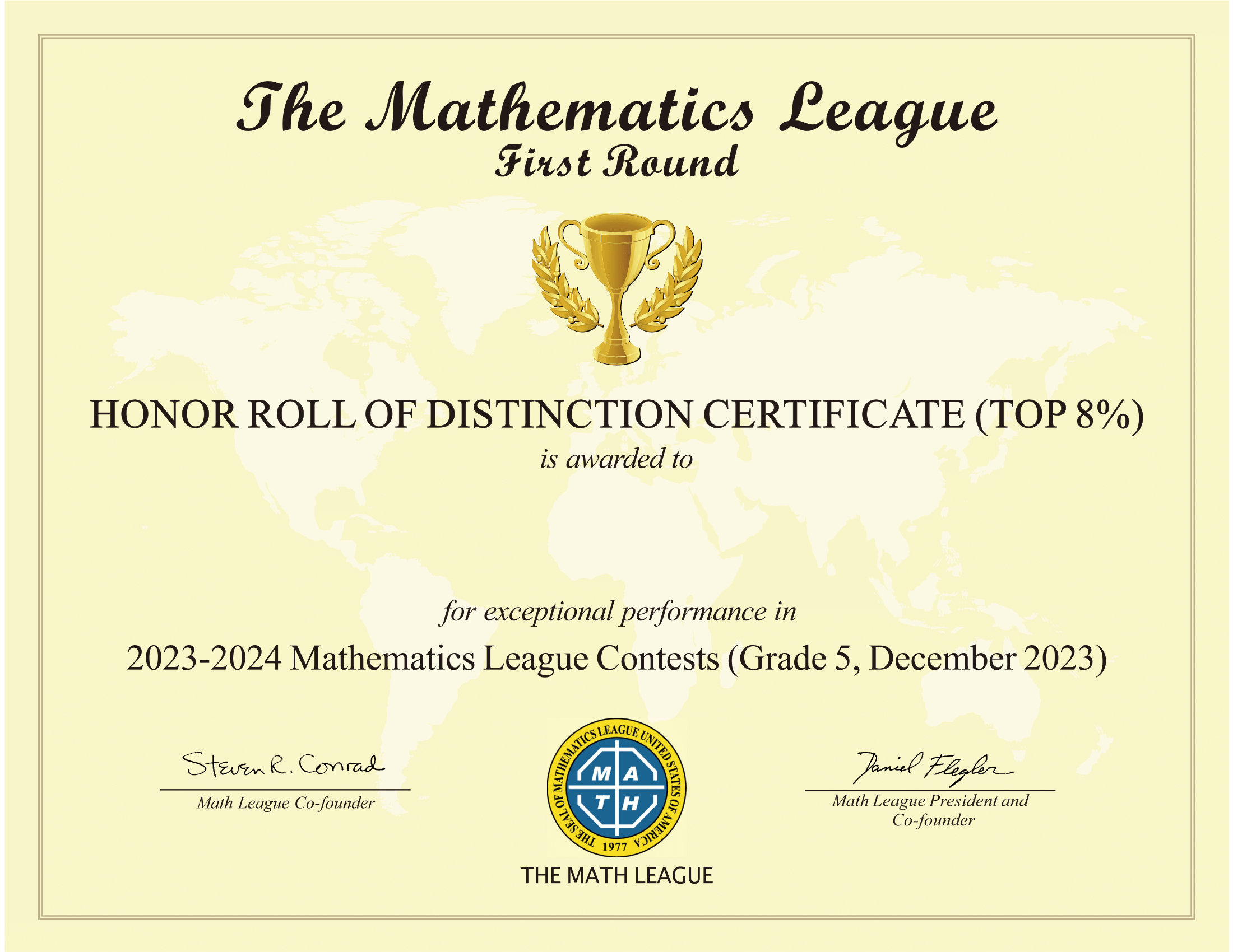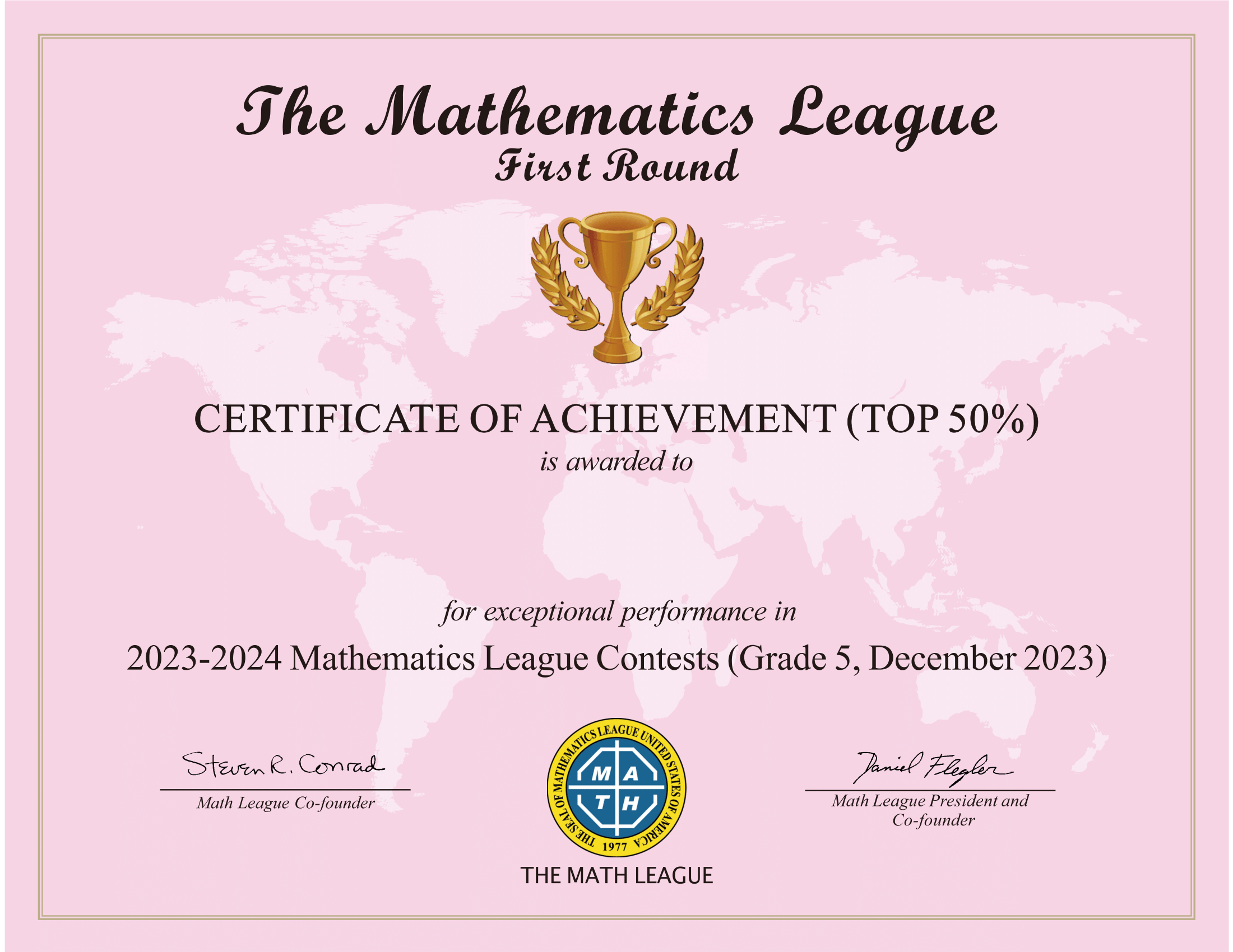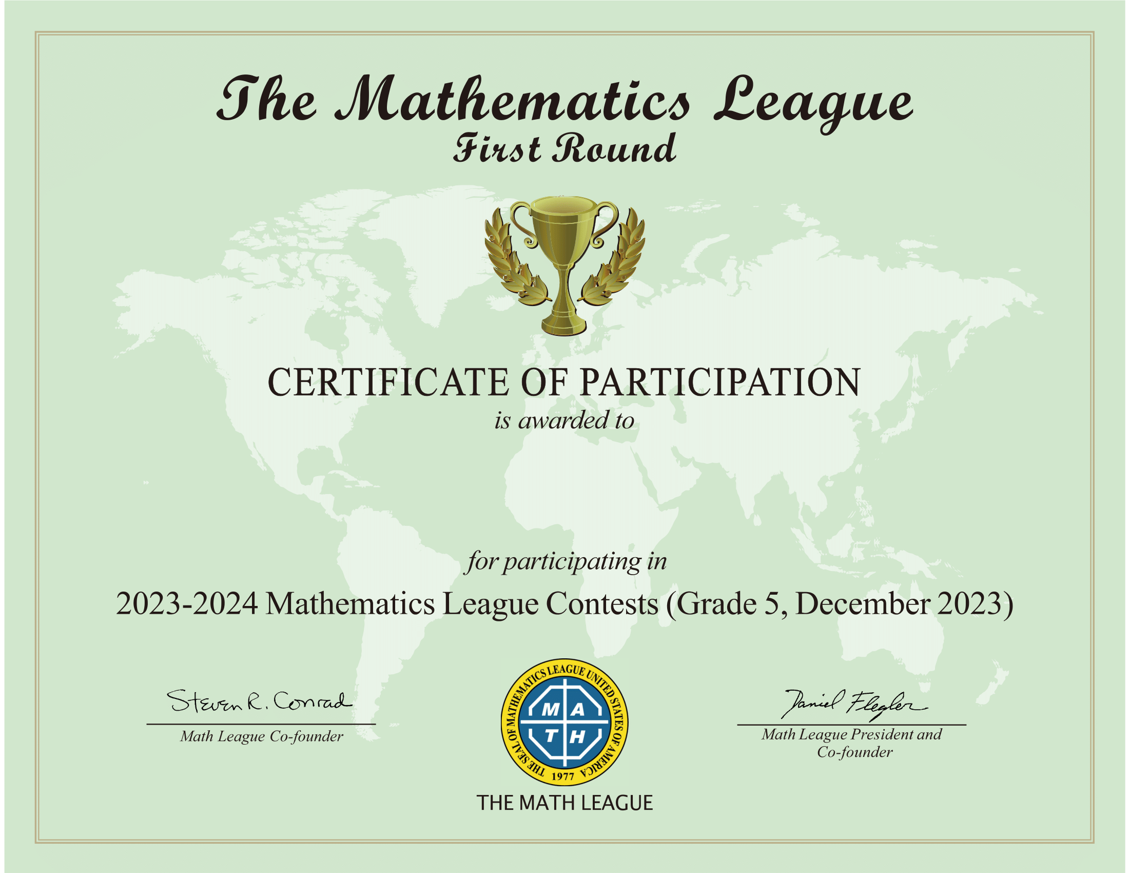 2023-2024年度美国Math League思维探索第一阶段活动证书式样